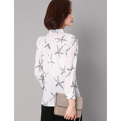 Women's Casual/Daily Street chic All Seasons ShirtPrint Stand Long Sleeve Blue / White / Black Rayon / Polyester Thin