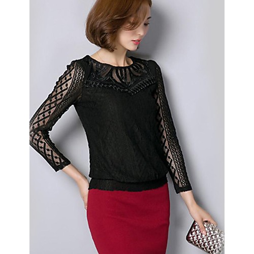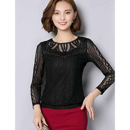 Product Code: Women's Plus Size Sophisticated Fall BlouseSolid Round Neck Long